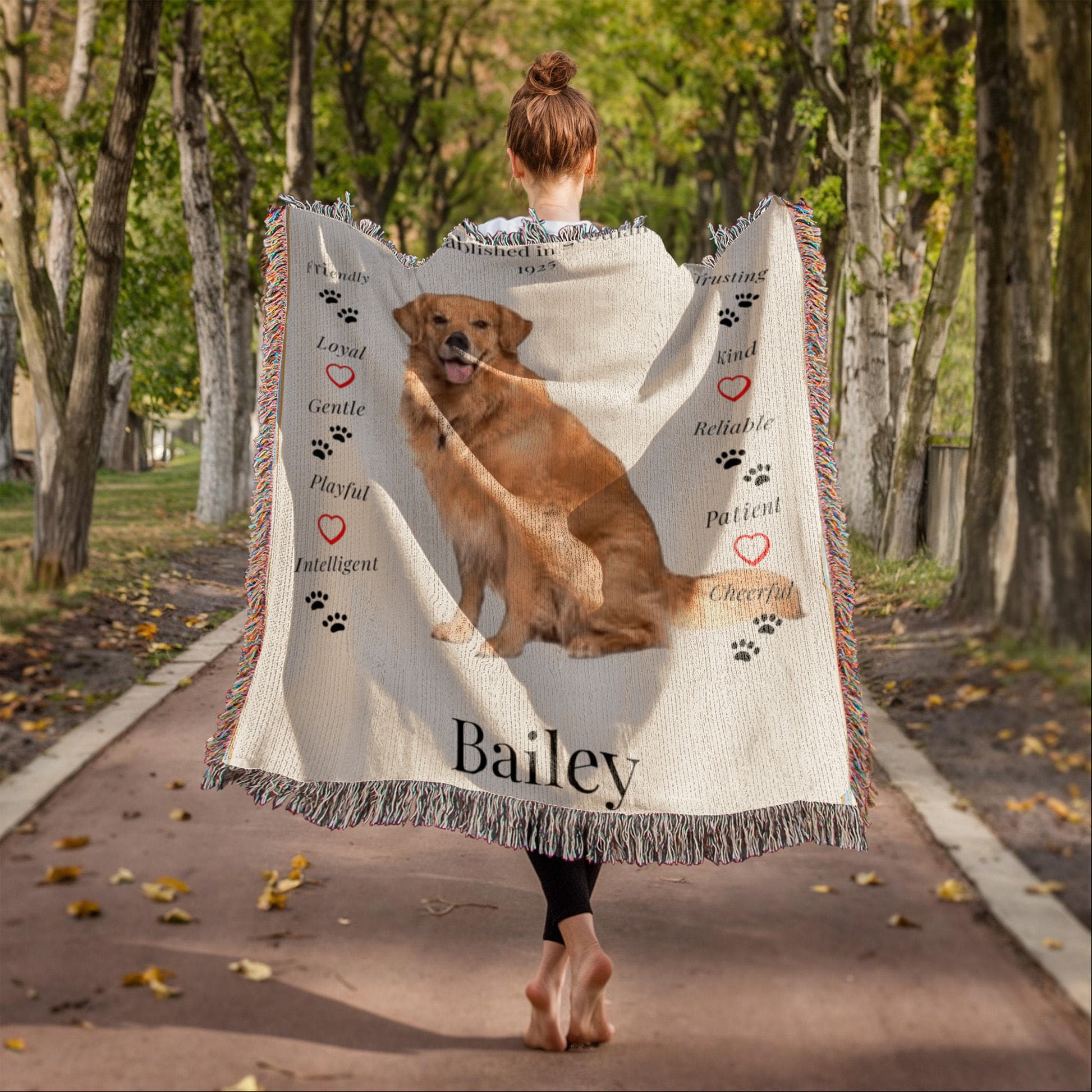 Golden by nature, loyal by heart โ this custom-woven cotton heirloom transforms your Golden Retrieverโs photo into a timeless keepsake of warmth, devotion, and joy.
