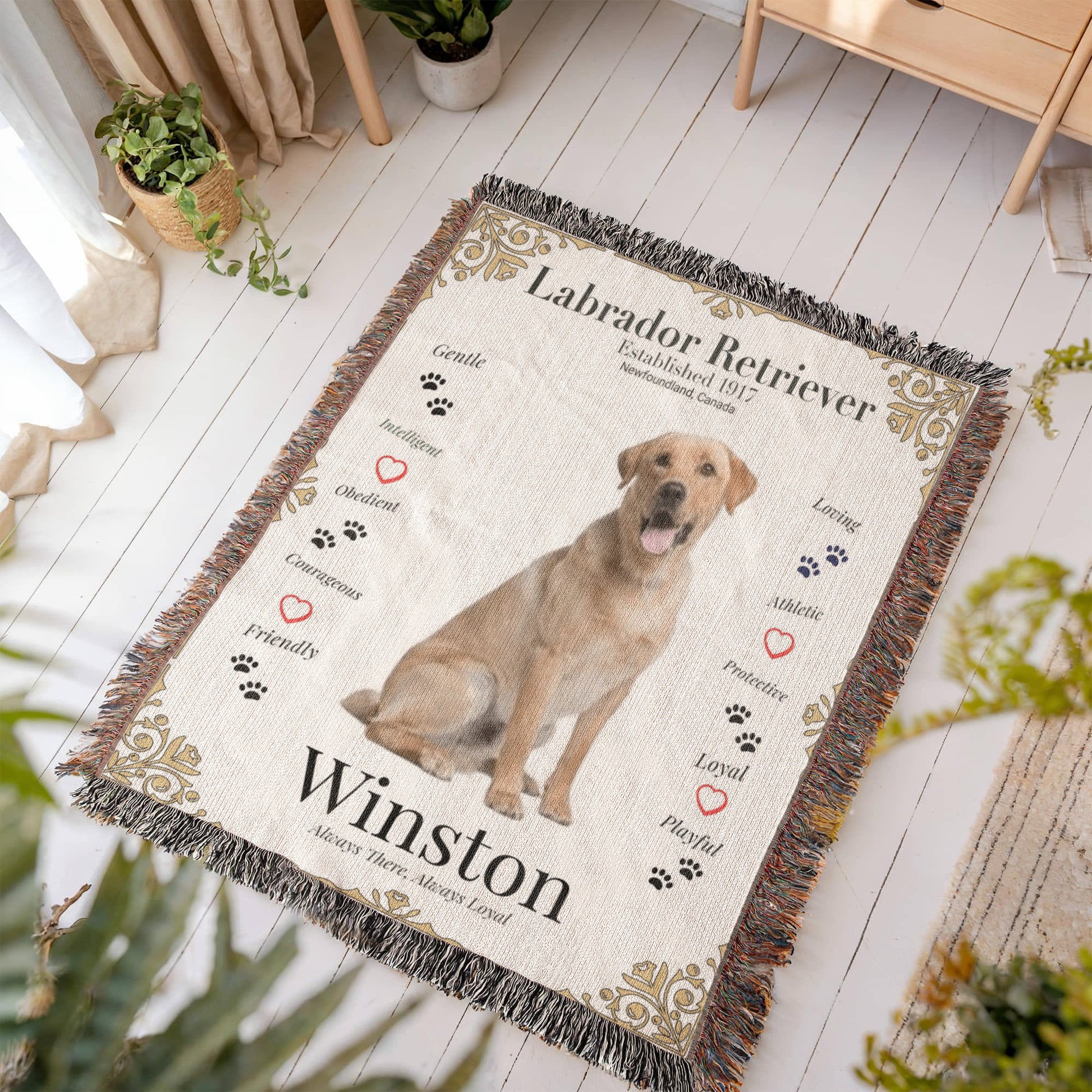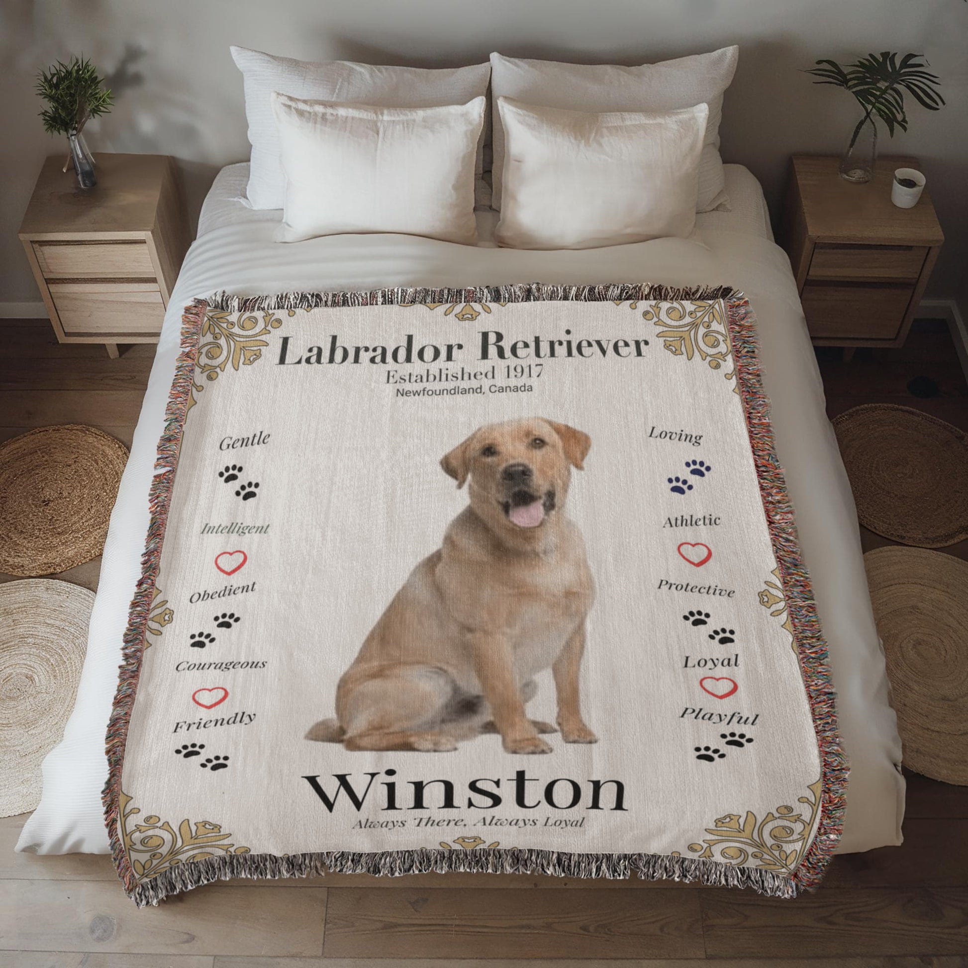 Celebrate your Labβs loyal heart with a custom-woven heirloom blanket. Crafted from 100% cotton, it turns your photo into a cozy keepsake that captures your Labβs warmth and joy.