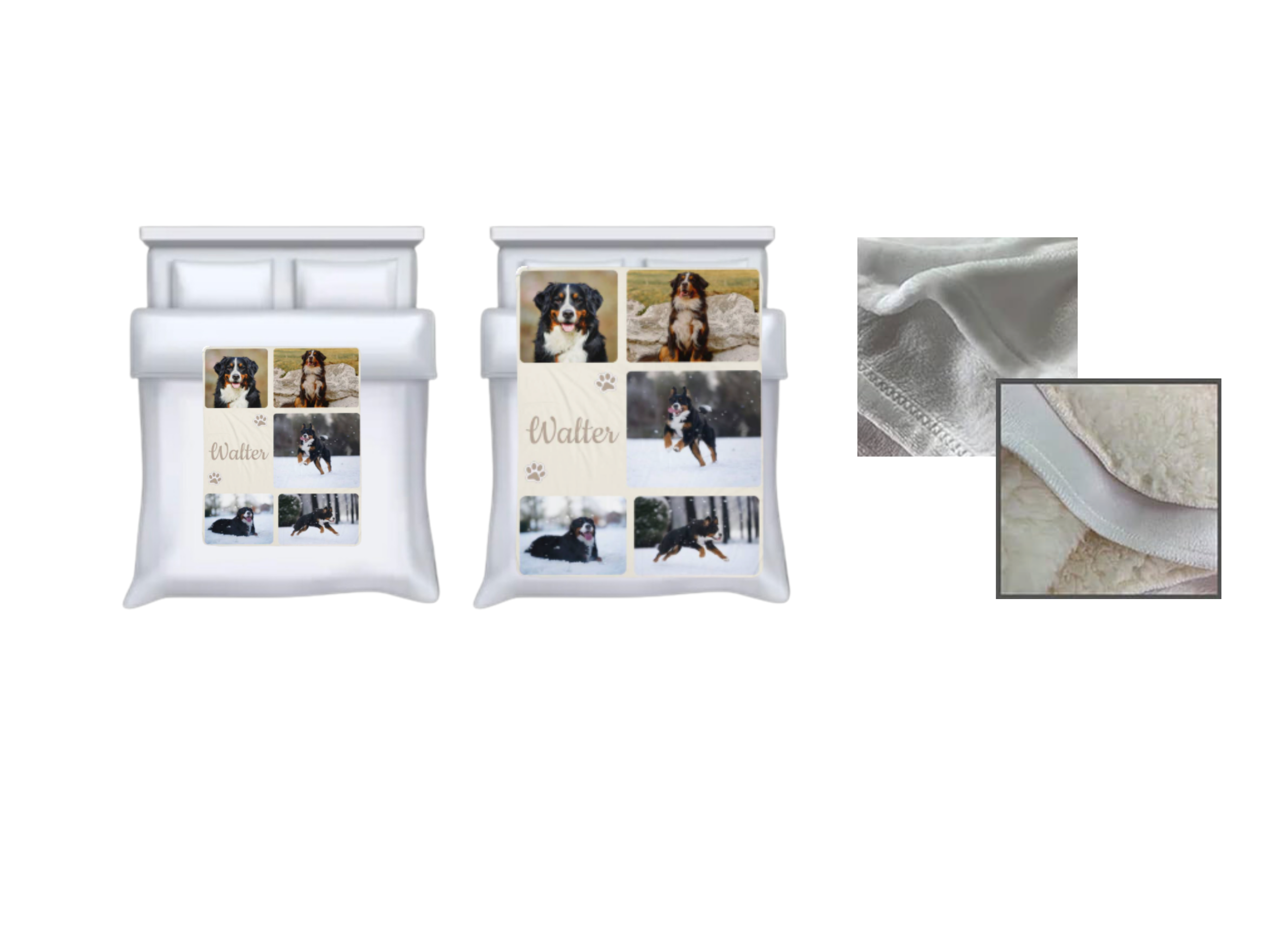 Crafted with a smooth, ultra-soft polyester front and a super fluffy sherpa fleece backing, this blanket delivers exceptional warmth and plush comfort. Dye-sublimation printing ensures your petâs photos remain vibrant and detailed, while decorative zigzag edge stitching adds durability and a polished finish. Whether draped over your couch, layered on your bed, or wrapped around you, it brings both emotional warmth and practical coziness to any space.